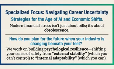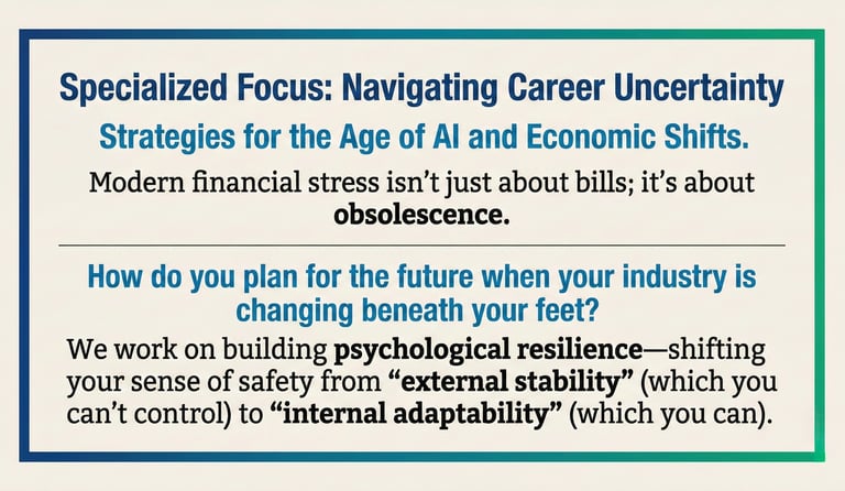 I help people break this cycle. We work to shift your sense of security from external markers—which can always change—to an internal sense of grounding that remains stable, regardless of the economy.